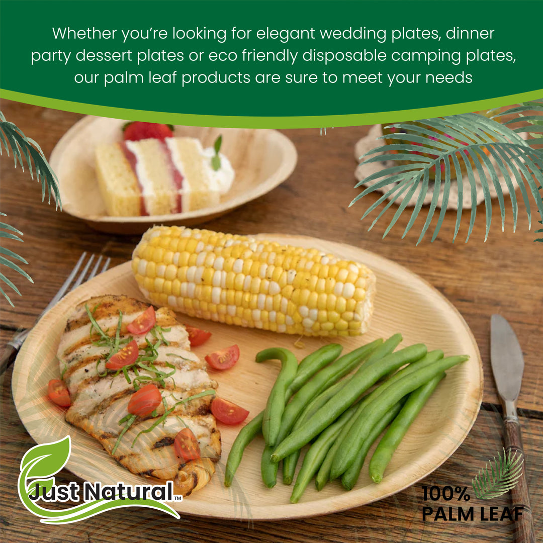 Just Natural Palm Leaf Plates Square - Natural Wood Style Dinnerware - Microwave-Safe - Dinner Party Plates for Wedding, Events - Sturdy Like Bamboo Plates-Eco Friendly